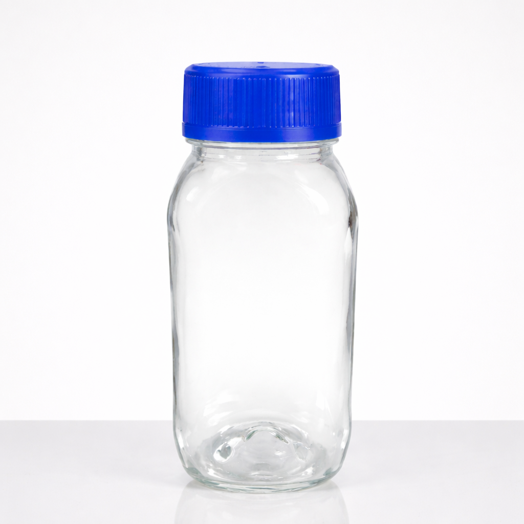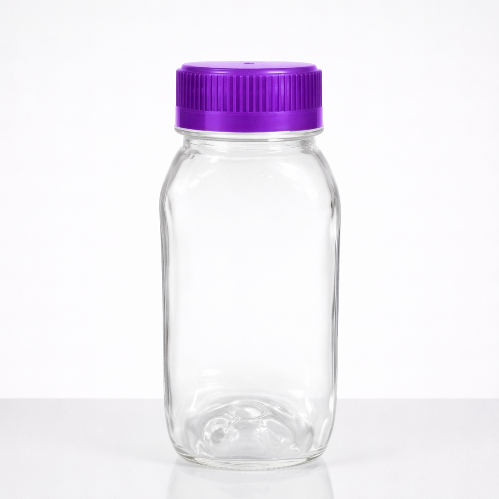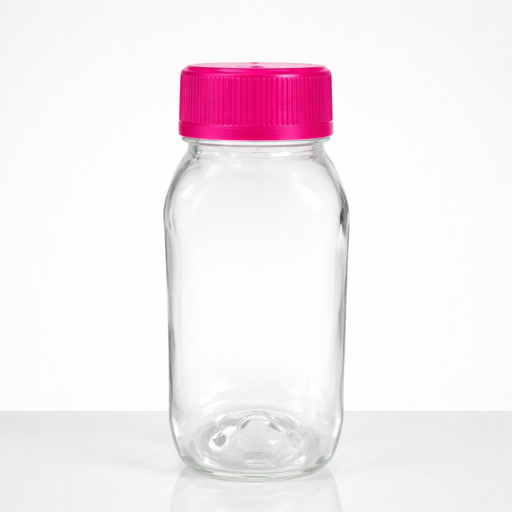 Garrafa PET 200ml cristal com tampa lacre de indução — ideal para envasar suco natural, água de coco e shots funcionais no atacado. Fardos de 300 a 2.400 unidades com desconto progressivo. Tampa disponível em 5 cores (preto, azul, rosa, vermelho e roxo). Material PET virgem, livre de BPA, aprovado pela ANVISA para contato com bebidas. Envio para todo o Brasil em até 24h.
